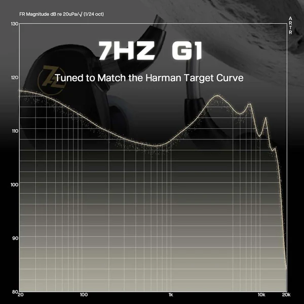 The 7HERTZ G1 IEM is expertly tuned to align with the Harman Target Curve, which delivers a smooth and natural soundstage with ultra-low distortion. Its frequency response closely matches this target curve, resulting in a clear and authentic listening experience. This tuning makes the earphones ideal for both music enthusiasts and gamers, highlighting their versatile nature.