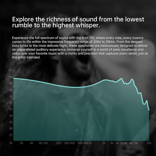 T10 features a 14.2mm diameter planar driver. Its ultra-thin diaphragm, coupled with dual magnets positioned parallel to it, creates a powerful magnetic flux and enables swift diaphragm movement. The result in ultra-low distortion, pristine, and accurate sound performance. The dual magnetic circuit planar driver design enhances sound quality by providing precise and accurate audio reproduction across the frequency spectrum. This results in clear highs, rich mids, and deep, well-defined bass.