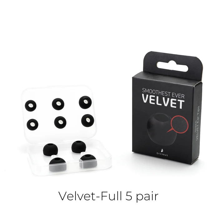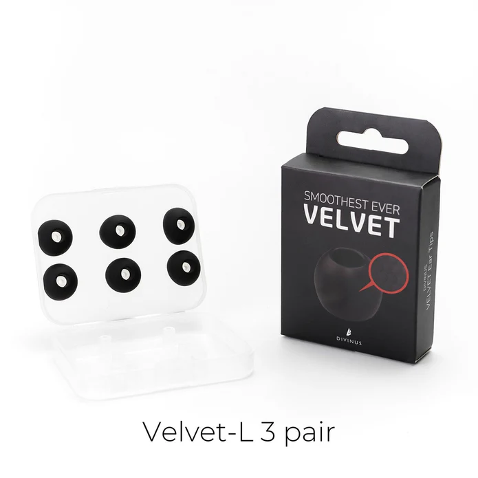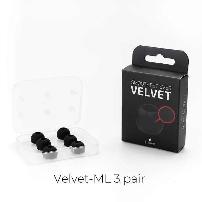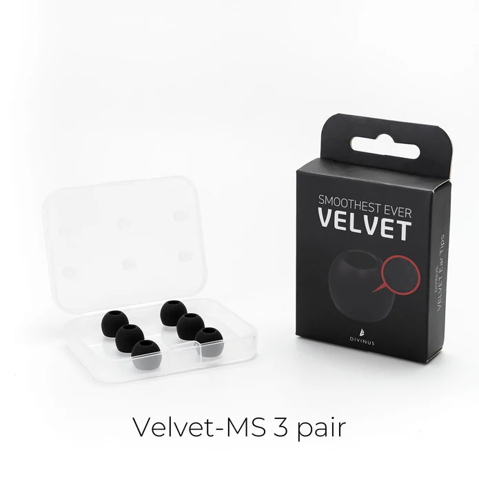 DIVINUS has developed the Velvet eartips with 3 years of development. The eartips have a soft velvety texture with a matte-finished micro-embossed design. Compared to standard silicone material eartips, the Divinus velvet tips are much more comfortable to wear and provide a great wearing feel.