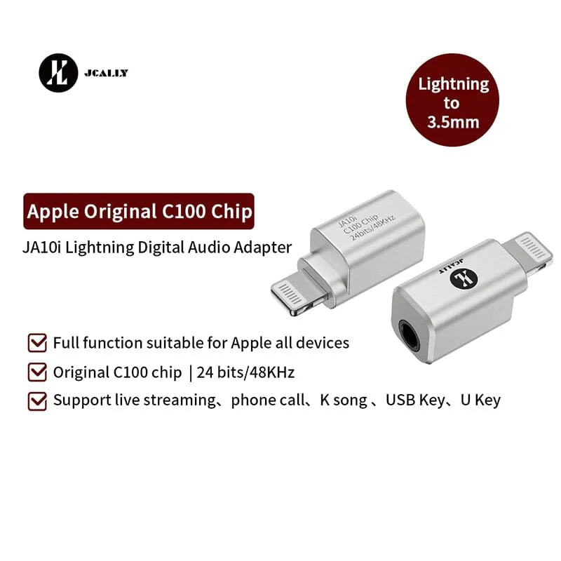 JCALLY JA10i C100 Lighting to 3.5mm Earphone Digital Audio Adapter For IOS