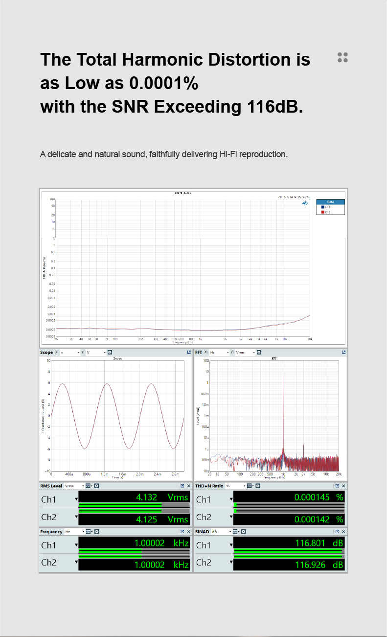 >Ultra-Low Harmonic Distortion(As low as 0.0001%).