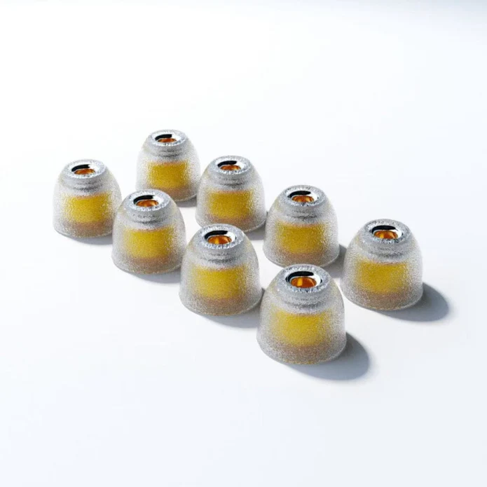 Tangzu Tang Sancai Noble Ear Tips are available in four different sizes, XS, S, M, and L. Each size has its own unique colour way. The XS has orange colour, the S has yellow colour, the M has Green colour, and the L size has Blue colour. The ear tips have a reinforced core so that they stay in their place firmly and provide the users with a consistent performance without having to adjust them again and again.